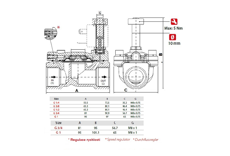 | 0052877030 | 04F04214N0 | G 3/8" | 0.15-10 bar | Sol.10 (11) SOLX4 mm | 14 mm | 3320 L/hod. | - " | NBR | |