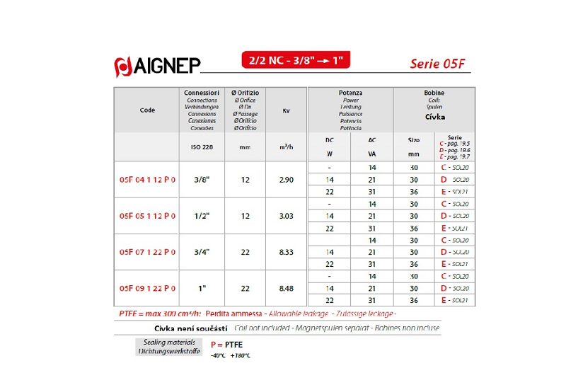 Skrátená poznámka: Cievka solenoidu sa musí objednať zvlášť, C: SOL20, SOL21.