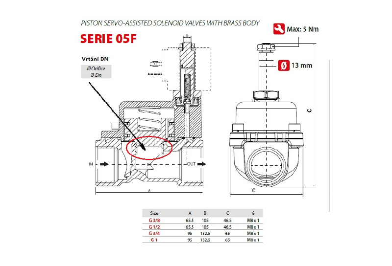 Tieto ventily 05F - 2/2 NC majú jednu cestu a dve úlohy. Typ NC - sú v základnom stave zatvorené. Po zapojení a spustení prúdu je membránou otvor otvorený. Na dopyt je ponúkaný špeciálny rad: "K" - verzia s niklovanou mosadzou.