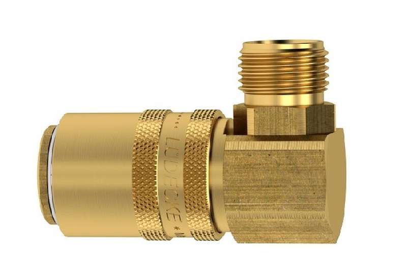 Rýchlospojky určené pre plastikárske stroje a formy s voľným priechodom. Na aplikácie udržanie stálej teploty horúcou a studenou vodou, poprípade temperovacím olejom. Kompatibilné s Hasco Z8. Mosadzné telo a objímka, vnútorná časť z nerezovej ocele, tesnenie viton. Rýchlospojka Plastik Dn 9 s vonkajším uhlovým závitom 90° a ventilom, vnútorný kužeľ DIN 3863. Dn9 -rada ESH Lüdecke uvádza okraj rozmer čapu 13mm, cez výstupky čapu nameriate 13,4 mm.
