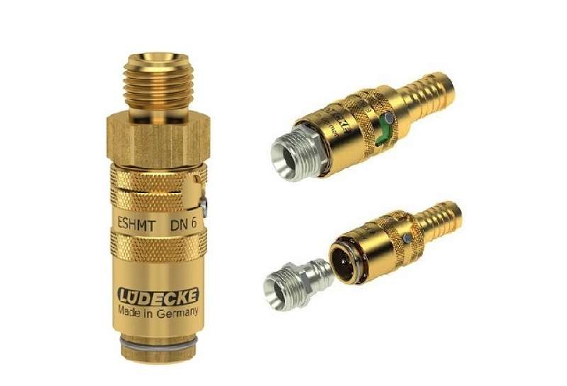Rýchlospojky s dokonalým zabezpečením proti samovoľnému uvoľneniu. Kompatibilné s Hasco Z8. Patentovaný systém "Temp Secure" určený najmä pre plastikársky priemysel. Pre rok 2022 výrobca Lüdecke doplnil rad o farebne svietiace doštičky, viď video pri sekcii. Kódy sú v prípade tohto prevedenia ESHMT* zmenené na ESHMTC*. Veľkosť vsuvky 9 mm s automatickým zaisťovacím mechanizmom. Vonkajší priemer nasadzovaných vsuviek série DN 6 je 9 mm (do rýchlospojok). Pre aplikácie regulácie teploty s horúcou alebo studenou vodou a temperovaným olejom. Mosadzné telo aj objímka, vnútorné guličky a pružiny z nerezu, tesnenie viton.