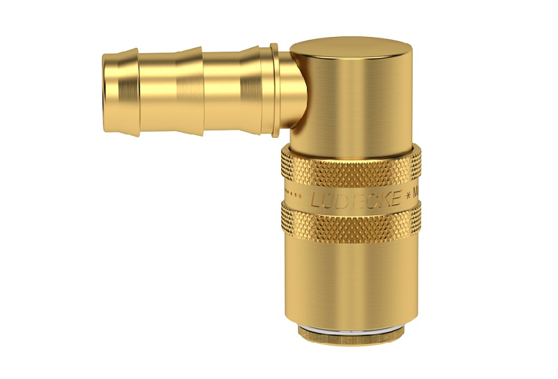 Rýchlospojky určené pre plastikárske stroje a formy s voľným priechodom. Systém DN 9 má vonkajší priemer nasadzovanej vsuvky 13 mm (do rýchlospojky). Na aplikácie udržanie stálej teploty horúcou a studenou vodou, poprípade temperovacím olejom. Kompatibilné s Hasco Z8. Mosadzné telo, a objímka, vnútorná časť z nerezovej ocele, tesnenie viton. Rýchlospojka Plastik Dn 9 s uhlovým tŕňom 90° s ventilom pre nástrčné hadice. Dĺžka tŕňa 33 mm.