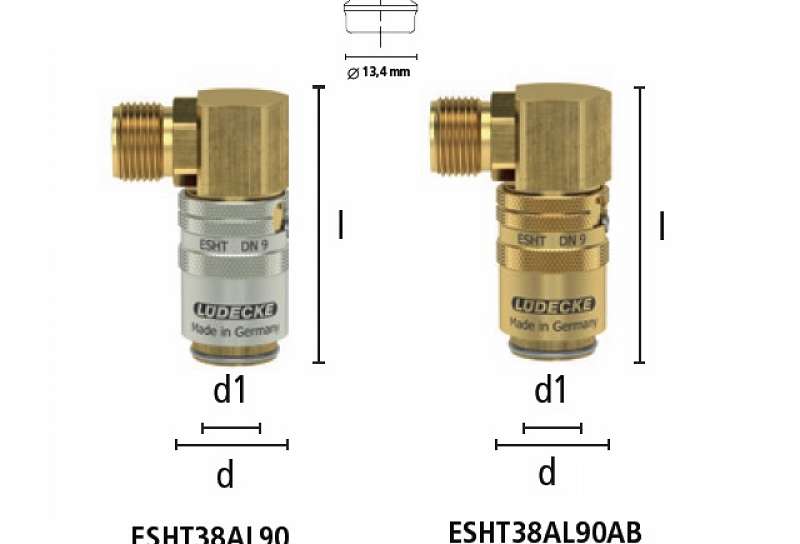 Rýchlospojky určené pre plastikárske stroje a formy s patentovaným automatickým bezpečnostným zaisťovacím mechanizmom. Pre aplikácie, kde je potrebné udržanie stálej teploty horúcou a studenou vodou, poprípade temperovacím olejom. Kompatibilný s Hasco Z8. Pripojovacie časti, ventilové telo, ventil, vsuvky z mosadz MS 58/materiál 2.0401.Pružiny a rozperný krúžok z nerezovej ocele 1.4310, guľa - nerezová oceľ 1.4034, tesnenie: Viton. Rozmer čapu vsuvky 13 mm. Jednoručný systém spojenia umožňuje veľmi jednoduché a rýchle spojenie rýchlospojky s protikusom (s hadicou a koncovkou). Temp Secure (bezpečnostný patentovaný systém výrobcu Lüdecke) - význam je v zabránení náhodnému rozpojeniu, cieľom je zabezpečenie. Sériu DN 9 sú vďaka tvarom a spôsobu rozpájania 2 typy zaistenia 1. Tvar Z a 2. voliteľnou požiadavkou zaistenia "S". Kombinovaná tlakovo torzná pružina a zosilnené uvoľňovacie puzdro z vysoko odolnej špeciálnej mosadze. Voliteľne s priamymi, jednoduchými alebo dvojitými uzatváracími ventilmi, pre spojenie so zástrčkou radu ESH DN 9. Pre rok 2022 výrobca Lüdecke doplnil rad o farebne svietiace doštičky, viď video pri sekcii. Kody sú v prípade tohto prevedenia ESHT* zmenené na ESHTC*.