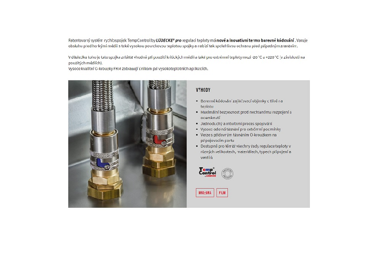 Použitie produktu: Plastikárske stroje a formy s vedením horúcej a studenej vody alebo temperovacích olejov