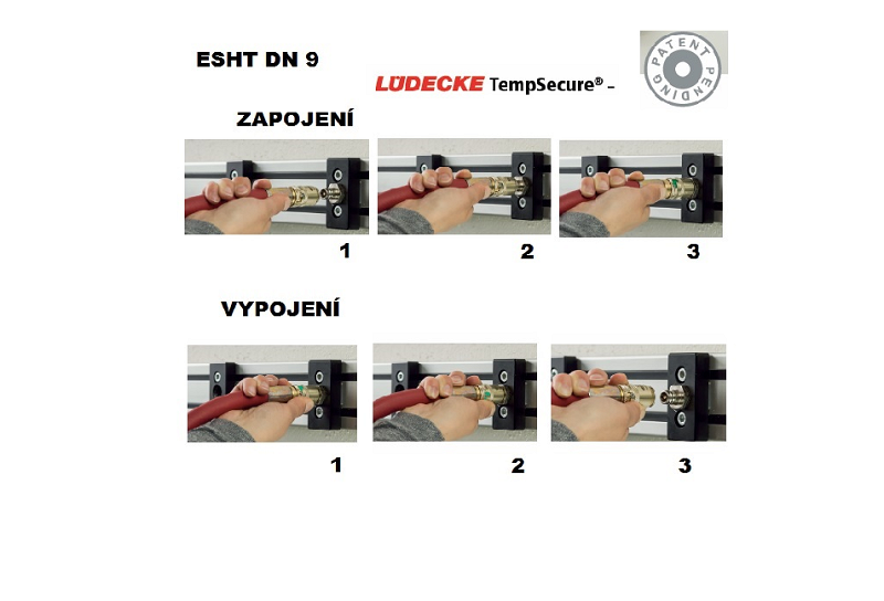 Rozmer čapu vsuvky 13 mm. Jednoručný systém spojenia umožňuje veľmi jednoduché a rýchle spojenie rýchlospojky s protikusom (s hadicou a koncovkou). Temp Secure (bezpečnostný patentovaný systém výrobcu Lüdecke) - význam je v zabránení náhodnému rozpojeniu, cieľom je zabezpečenie.