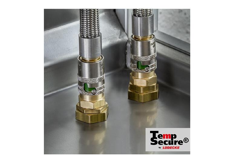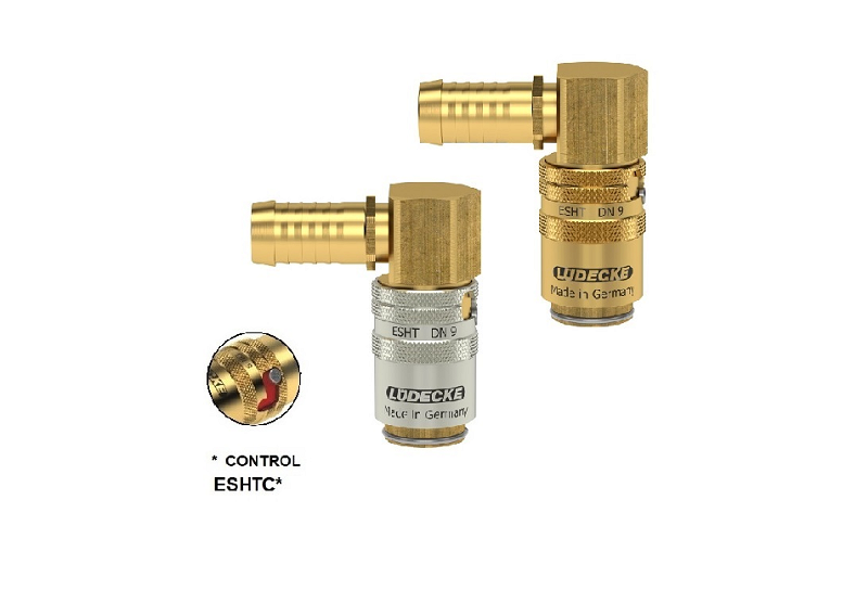 Rýchlospojky určené pre plastikárske stroje a formy s patentovaným automatickým bezpečnostným zaisťovacím mechanizmom. Pre aplikácie, kde je potrebné udržanie stálej teploty horúcou a studenou vodou, poprípade temperovacím olejom. Kompatibilný s Hasco Z8. Pripojovacie časti, ventilové telo, ventil, vsuvky z mosadz MS 58/materiál 2.0401.Pružiny a rozperný krúžok z nerezovej ocele 1.4310, guľa - nerezová oceľ 1.4034, tesnenie: Viton. Rozmer čapu vsuvky 13 mm. Jednoručný systém spojenia umožňuje veľmi jednoduché a rýchle spojenie rýchlospojky s protikusom (s hadicou a koncovkou). Temp Secure (bezpečnostný patentovaný systém výrobcu Lüdecke) - význam je v zabránení náhodnému rozpojeniu, cieľom je zabezpečenie. Sériu DN 9 sú vďaka tvarom a spôsobu rozpájania 2 typy zaistenia 1. Tvar Z a 2. voliteľnou požiadavkou zaistenia "S". Kombinovaná tlakovo torzná pružina a zosilnené uvoľňovacie puzdro z vysoko odolnej špeciálnej mosadze. Voliteľne s priamymi, jednoduchými alebo dvojitými uzatváracími ventilmi, pre spojenie so zástrčkou radu ESH DN 9. Pre rok 2022 výrobca Lüdecke doplnil rad o farebne svietiace doštičky, viď video pri sekcii. Kody sú v prípade tohto prevedenia ESHT* zmenené na ESHTC*.
