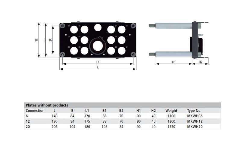| 0034600200 | MKWH20 | 9 mm | 15 bar | 206 mm | 20 - otvorov modul | 1.35 kg |