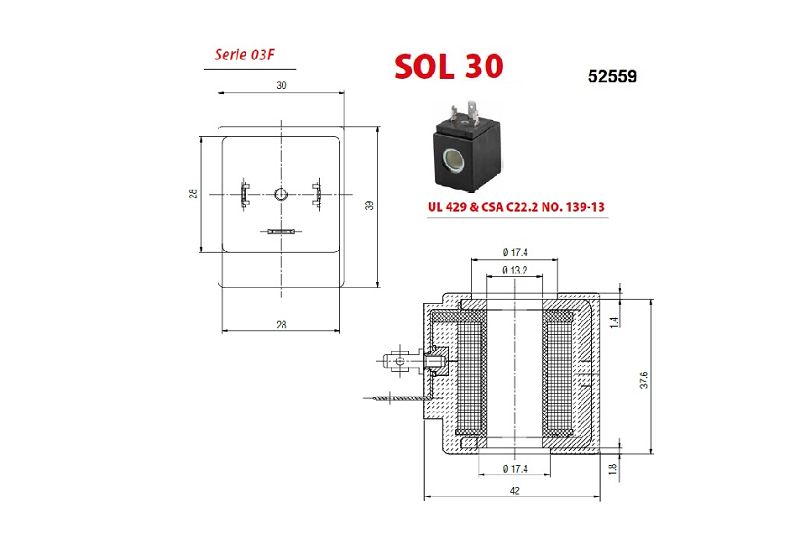| 0052559326 | SOL20024AB000 | 24 AC/50-60Hz | 03F-séria D " | *D13 mm | 21 VA | 1 ks | 30 mm | 0.206 kg | |