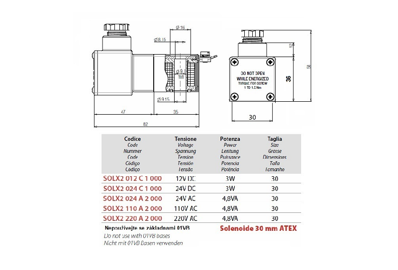 Určené na spínanie pneumatických ventilov Séria 01V (alebo iných sérií podľa čapu solenoidov 8-9 mm).