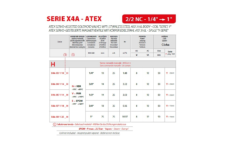 | 0082880070 | X4A09125VH | G 1" | VITON | 0.15 - 16 bar | 25 mm | 10970 L/hod. | Sol.Y0 mm | H " |