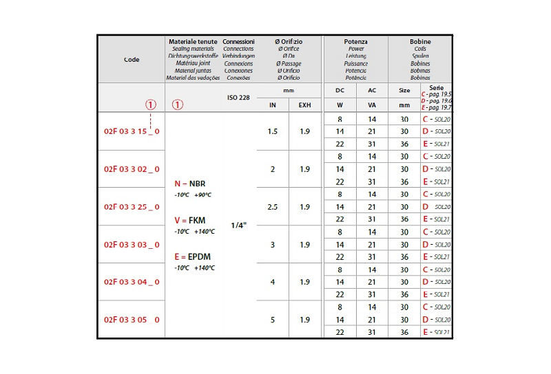 | 0052445420 | 02F05303N0 | 2x1/2" | 0-10 bar | *D1.9 EXH mm | 3 mm | 210 l/hod. | 75.5 mm | NBR | |