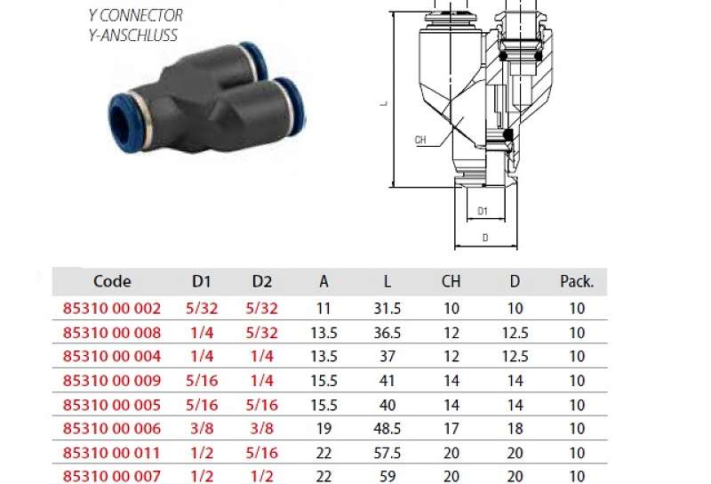 Jednoduchý systém spájania PA, PU, a PE hadíc pre automobilový priemysel, automatizáciu a rozvody vzduchu. Teleso - technopolymér, Teleso - mosadz galvanicky niklovaná. Puzdro z acetátovej živice, Puzdro - mosadz galvanicky niklovaná. Nerezové klieštiny, Plastový bezpečnostný krúžok. NBR profilový krúžok NBR 70.