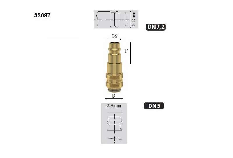 Mosadzný adaptér systému Mini DN5 v rýchlospojke k ES vsuvke rýchlospojky DN 7,2.