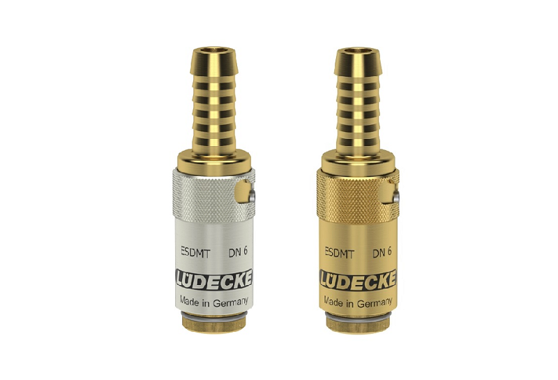 Rýchlospojky s malými rozmermi a patentovaným automatickým bezpečnostným zaisťovacím mechanizmom "TempSecure". Pre aplikácie regulácie teploty s horúcou alebo studenou vodou a temperovaným olejom určené pre plastikárske stroje a formy s voľným priechodom, udržanie stálej teploty horúcou alebo studenou vodou, popr. temperovacími olejmi. Automatický zaisťovací mechanizmus (ALM). Temperovacie rýchlospojky Séria ESDMT DN 6 s veľkosťou priemeru čapu 9,4 mm s automatickým zaisťovacím mechanizmom. Voliteľne s priamymi, jednoduchými alebo dvojitými uzatváracími ventilmi. Kombinovaná tlakovo torzná pružina a zosilnené uvoľňovacie puzdro z vysoko odolnej špeciálnej mosadze. Systém ESDM je plne kompatibilný s americkým systémom DME 1/4", nie Hasco, Pre spojenie so zástrčkou rady ESDM DN 6.