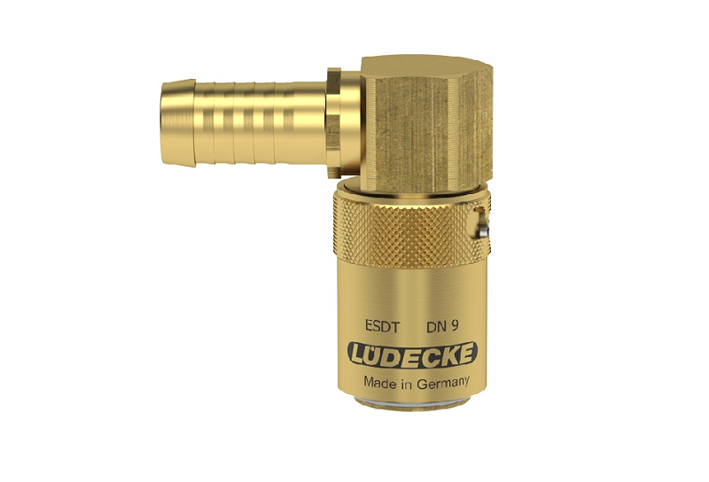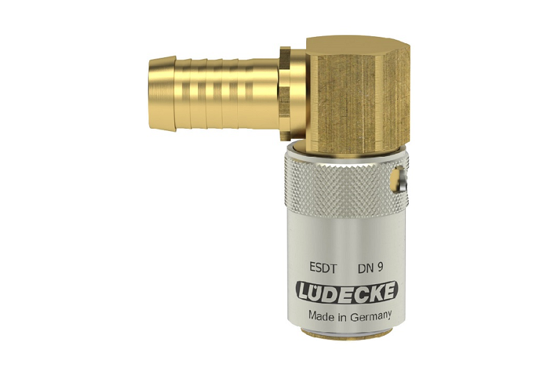 ALM - Automatický zaisťovací mechanizmus (Automatic Locking Mechanism) - patent Lüdecke. Temperovacie rýchlospojky Séria ESDT DN 9 s veľkosťou priemeru čapu 13,5 mm z mosadze 2.0401. Pre aplikácie regulácie teploty s horúcou alebo studenou vodou a temperovaným olejom. Najbezpečnejšie a najžiadanejšie rýchlospojky v plastikárskom priemysle (práca s horúcimi médiami). Oproti zaisteniu typu S, (napr. séria ESD alebo ESDF) dostávajú prednosť najmä kvôli bezpečnostnej napr. v hustej prevádzke s horúcimi olejmi (horúcou vodou). Verzia s prídavným tesnením O-krúžkom na pripojovacom porte, aby sa zabránilo úniku pri vysokoteplotných aplikáciách. Pre spojenie so zástrčkou radu ESD DN 9. Systém ESD je plne kompatibilný s americkým systémom DME 3/8", nie Hasco.