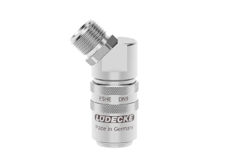 Rýchlospojky určené pre plastikárske stroje a formy s voľným priechodom. Na aplikácie udržanie stále teploty horúcou a studenou vodou, poprípade temperovacím olejom. Rýchlospojky nerezovej série sú určené pre tŕne a vsuvky rovnakej série ESHE s veľkosťou čapu tŕňa 13 mm, kompatibilný so systémom Hasco Z 8. Vnútorný kužeľ DIN 3863. Nerezová rýchlospojka Plastik Dn 9 s vonkajším uhlovým závitom 45 ° s / bez ventilu.