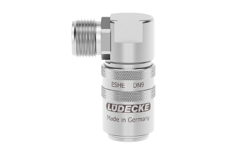 Rýchlospojky určené pre plastikárske stroje a formy s voľným priechodom. Na aplikácie udržanie stále teploty horúcou a studenou vodou, poprípade temperovacím olejom. Rýchlospojky nerezovej série sú určené pre tŕne a vsuvky rovnakej série ESHE s veľkosťou čapu tŕňa 13mm, kompatibilný so systémom Hasco Z 8. Vnútorný kužeľ DIN 3863. Nerezová rýchlospojka Plastik Dn 9 s vonkajším uhlovým závitom 90° s/bez ventilu.