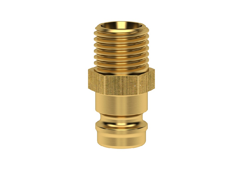 Rýchlospojky určené pre plastikárske stroje a formy s voľným priechodom. Na aplikácie udržanie stále teploty horúcou a studenou vodou, poprípade temperovacím olejom. Kompatibilný s Hasco Z8. Mosadzné telo, a objímka, vnútorná časť z nerezovej ocele, tesnenie viton. Vsuvka Dn 9 s priamym vonkajším závitom, s ventilom. Vnútorný kužeľ DIN 3863. Dn9 - rada ESH Lüdecke uvádza okraj rozmer čapu 13mm, cez výtupky čapu nameriate 13,4 mm.