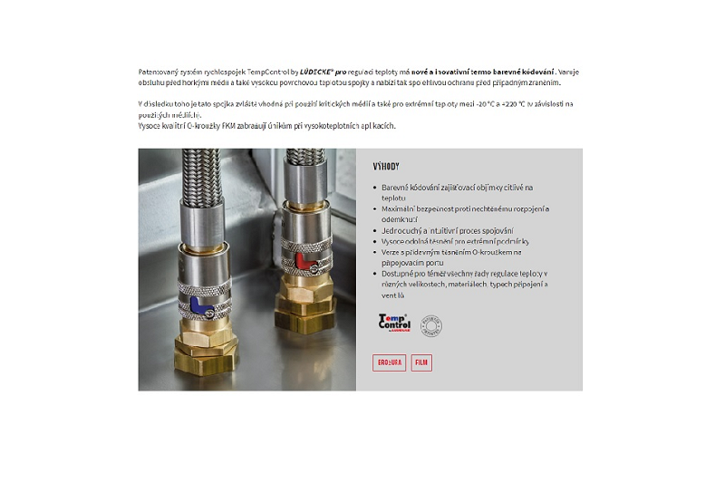 Rozmer čapu vsuvky 13 mm. Jednoručný systém spojenia umožňuje veľmi jednoduché a rýchle spojenie rýchlospojky s protikusom (s hadicou a koncovkou). Temp Secure (bezpečnostný patentovaný systém výrobcu Lüdecke) - význam je v zabránení náhodnému rozpojeniu, cieľom je zabezpečenie.