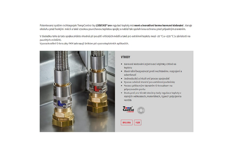 Použitie produktu: Plastikárske stroje a formy s vedením horúcej a studenej vody alebo temperovacích olejov