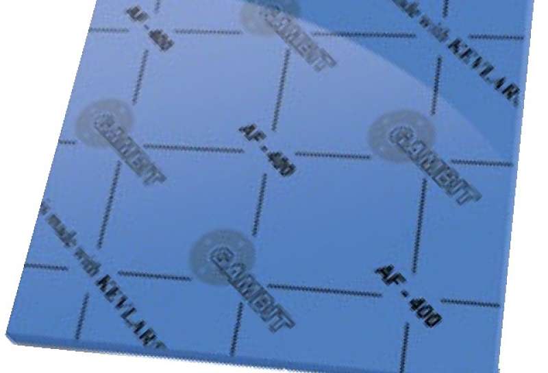 GAMBIT AF-400 je vyrobená z vysoko kvalitných materiálov, minerálnych vlákien spojených zmesou NBR. Formát dosiek: 1500 x 1500 mm (na dopyt 1500 x 3000 mm), tolerancia +/-10%. Použitie: ako tesnenie pri priezoroch (dozorové spoje) pri plynových rozvodoch. Doska je odolná proti vode, pare 260 ° C, petroleji, palivám, olejom a roztokom solí. Nasiakavosť - bobtnatosť podľa ASTM F146: - voči oleju IRM 903 150 ° C / 5hod. (max.) = 6%, - voči Kerosenu 20°C/5hod. (max.) = 5%, - voči palivám triedy B 20°C/5 hod. (max.) = 6%. Pevnosť v strihu = 12 MPa DIN 52910. Prírubové skúšky podľa DIN 52913: Reziduálny tlak 50 MPa / 16 h / 300 ° C / (min.) = 30 MPa, Reziduálny tlak 50 MPa / 16 h / 175 ° C / (min. ) = 35 MPa. Hodnoty uvedené v tabuľke sa týkajú dosiek s hrúbkou 2,0 mm. Ponúkané služby: strojné rezanie na pásiky, tvarové rezanie tesnení na digitálnom plotri.