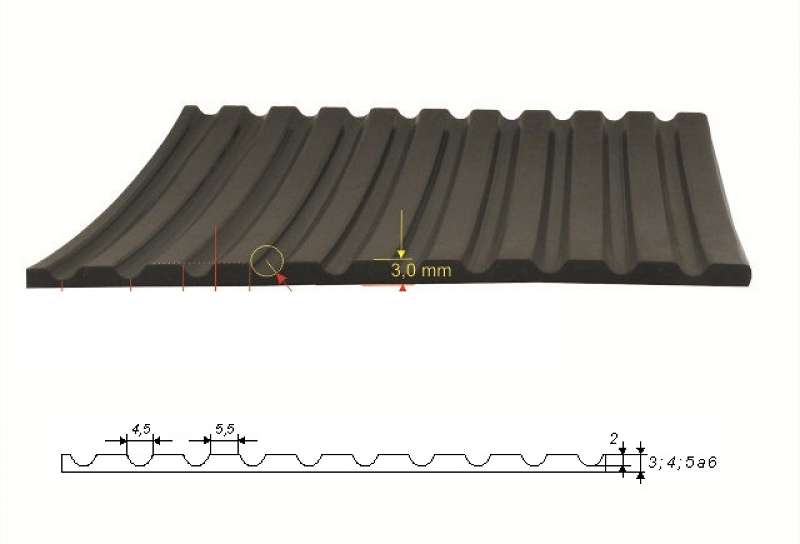 Pozdĺžne ryhovaná podlahovina s hrúbkou 3 mm. Cena gumy je za 1 m2. Balenie je iba informatívne, je možné odobrať akékoľvek množstvo. Pri objednaní do poznámky napíšte požadovaný rozmer. Ponúkané služby: strojné rezanie gumy na pásky, rezanie tvarového tesnenia na digitálnom plotri.