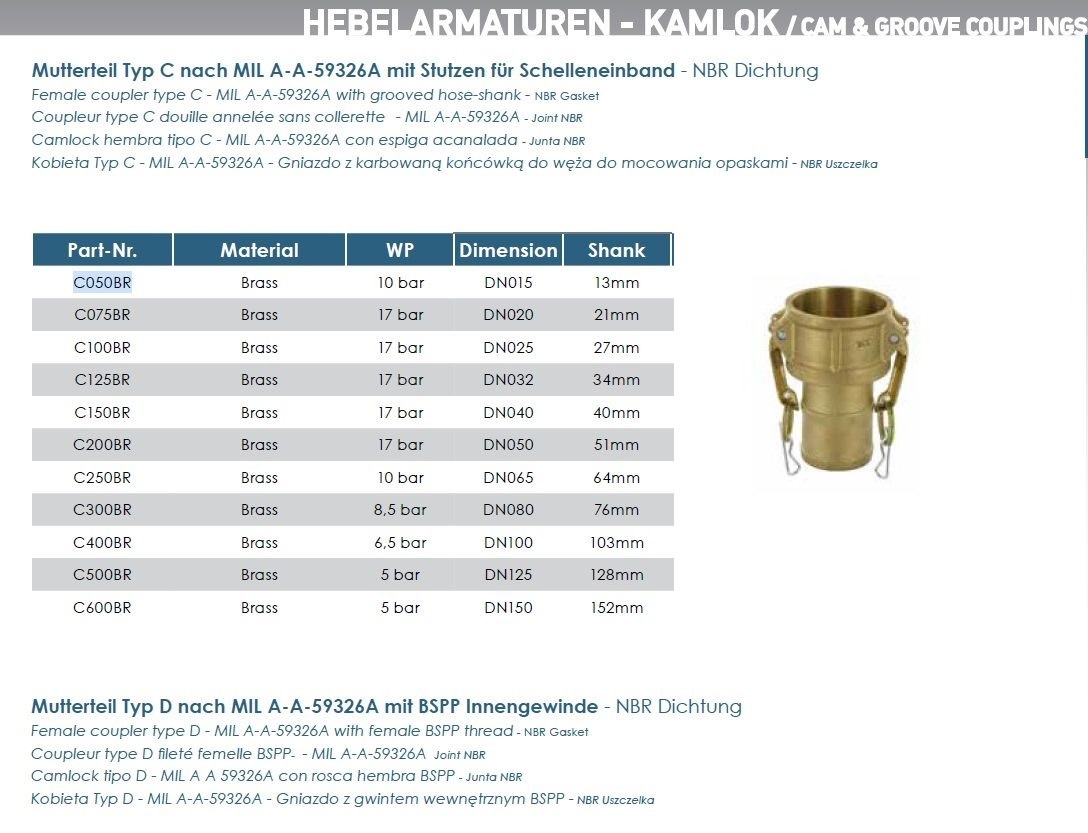 KAMLOK - Rýchlospojkový systém pre všeobecné použitie v priemysle, stavebníctve, poľnohospodárstve a cisternovej doprave. Vhodný pre kvapalné aj sypké médiá. Rýchlospojka s adaptérom sa uťahujú na princípe 2 vačiek, ktoré zaisťujú výbornú a vysokú pevnosť spoja. Štandardne je použité pri všetkých materiáloch Perbunanové tesnenie - BU. Tesnenie z iného materiálu je možné dodať ako náhradný diel. Materiál (HYP, EPDM, FPM).