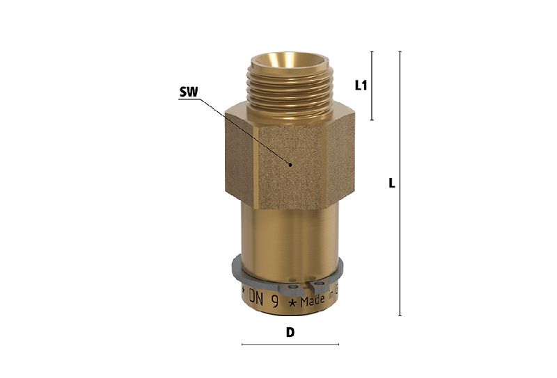 | Nákupný kód | Séria | DN | Vonkajší závit | Pracovný tlak | Ventil | Šesťhran | Celková dĺžka | Hmotnosť | |