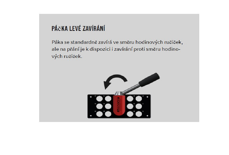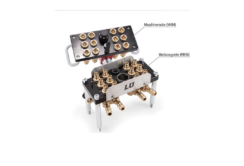Pre aplikácie s reguláciou teploty s horúcou alebo studenou vodou a taktiež temperovaným olejom. Multi-spojkový systém umožňuje pripojiť niekoľko okruhy regulácie teploty v jednom kroku. Jedná sa o MKMH je profil HASCO (európsky) a DME (medzinárodný). Dn9 -rada ESH Lüdecke uvádza okraj rozmer čapu 13mm, cez výtupky čapu nameriate 13,4 mm. Teplota v závislosti od média: (olej: +200 °C, voda: +150 °C, vzduch: +200 °C). Dosky, púzdro páky: eloxovaný hliník, Páka vrátane montáže, Hriadeľ: Pozinkovaná oceľ, hlava: termoset (PF), rukoväť: Potiahnutá hliníkom Vďaka modulárnej konštrukcii je možné zostaviť každú multispojku a konfigurovaný individuálne, a preto je dokonale prispôsobený akejkoľvek požiadavke a aplikácii. Výhody: Rýchle a súčasné pripojenie niekoľkých teplôt regulačné linky. Pomocou páky ľahko a rýchlo pripojíte a odpojíte systémy. Zvýšená bezpečnosť a účinnosť: žiadne riziko zámeny spojov/hadíc, skrátená doba vybavovania. Jednoduchá obsluha, robustný, vysoko kvalitný, odolný proti úniku. Môžete vybrať medzi verziou so 6, 12 alebo 20 pripojeniami. Taniere je možné objednať aj v červenej alebo modrej farbe. Páka sa štandardne zatvára v smere hodinových ručičiek, ale na prianie je k dispozícii aj zatváranie proti smeru hodinových ručičiek, kovanie sa objednáva zvlášť.