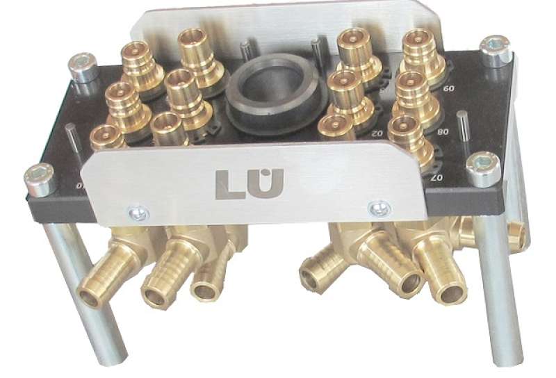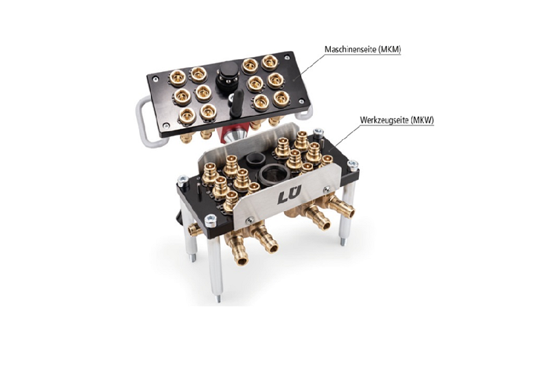 Teplota v závislosti od média: (olej: +200 °C, voda: +150 °C, vzduch: +200 °C). Nástrojová strana dvojdielneho viacspojkového systému. Vďaka modulárnej konštrukcii je možné zostaviť každú multispojku a konfigurovaný individuálne, a preto je dokonale prispôsobený akejkoľvek požiadavke a aplikácii.