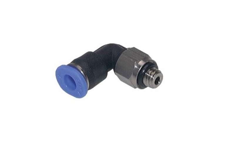 L-koleno s vonkajším závitom. Jednoručné prevedenie fungujúce na princípe pripojenia jedným stlačením umožňuje okamžité pripojenie hadíc. Jednoduchý systém spájania PA, PU a PE hadíc na automatizáciu a rozvody vzduchu. Tento rad je určený pre menej náročné aplikácie.