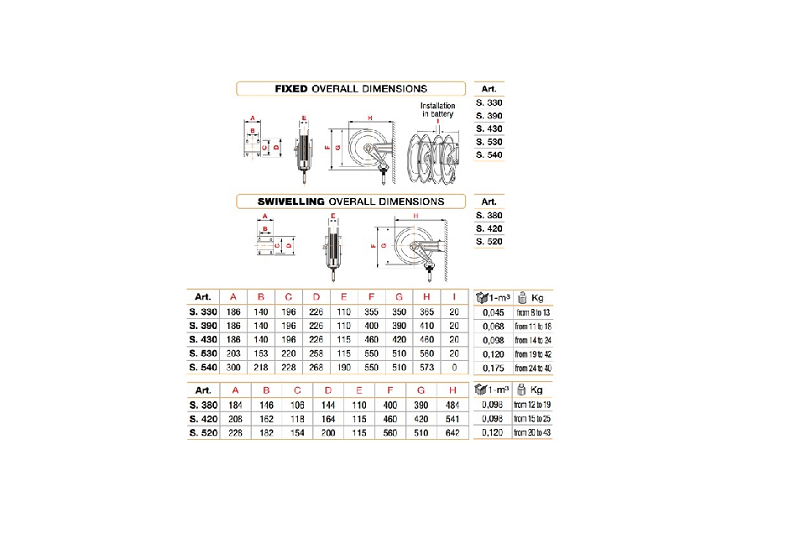 Tento navijak S430 je bez hadice, vstupný závit je G 3/8", výstup G 1/2". Navijak je tiež vhodný aj do prostredia ATEX (zóna 1 a 21). Navijak určený pre výsuv hadice, ktorá má každých 60 cm automatickú stopku, ktorá zabraňuje samovoľnému návratu hadice späť. Navijak je možné osadiť 3/8" hydraulickou hadicou v dĺžke až 15 m. Pre väčšiu dĺžku 20 až 25 m je potrebná rada S530. Navijaky sú dodávané v originálnom krabicovom balení, vrátane otočných závesov a návodu na montáž. Navijak bez hadice na základe požiadavky osadíme hadicou s koncovkami. 8432.500-600B-SS-G3/8 - Pevný navijak, nerezová oceľ AISI 304, séria S.430, pre tuk, 600 bar, bez hadice. Vstup G 3/8 (f) - výstup G 1/2 (f).