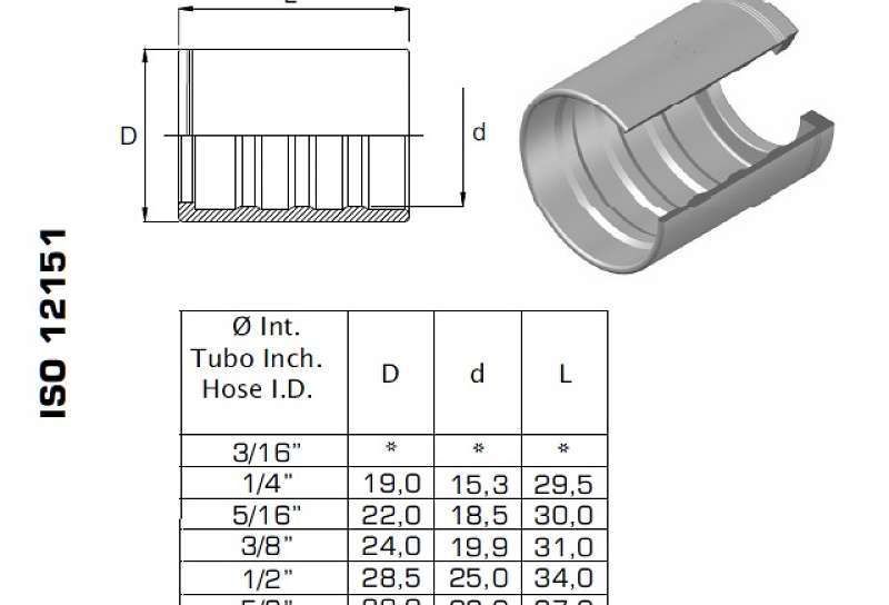Skrátená poznámka: Objímka pre hadice bez orezov (No skive), TE3 = hadica s tromi textilnými výpletmi