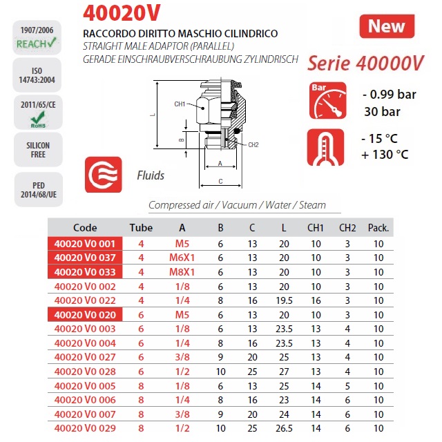 | 0052323100 | 4 mm | M5x0.8 | 30 bar | -0.99 bar | 10/2 | Viton | 4.0 mm | 20 | 0.008 kg | 10 ks | |