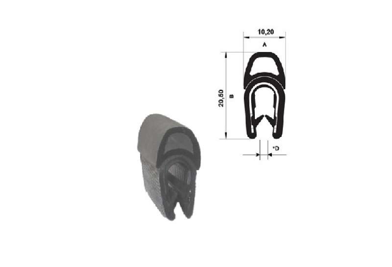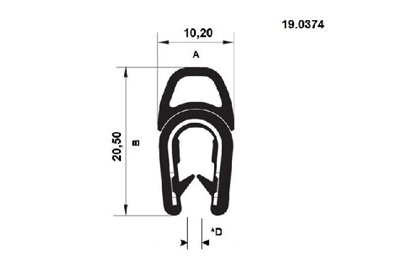 | 19.0374-175 | 1 mm | 4 mm | 20.5 mm | 10.2 | 19.0374 | U-PVC, brucho EPDM | PVC 78°ShA/ EPDM 60°ShA °ShA | 0.14 kg/m | 50 m |