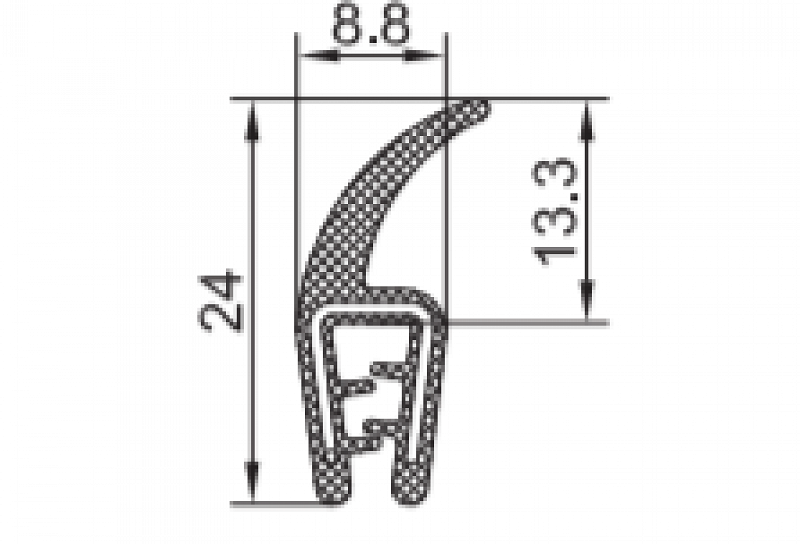 | 0054001501 | 1 mm | 2.5 mm | 24 mm | A1 501 | U-EPDM, zástavka EPDM | 60 °ShA | 0.146 kg/m | 50 m |