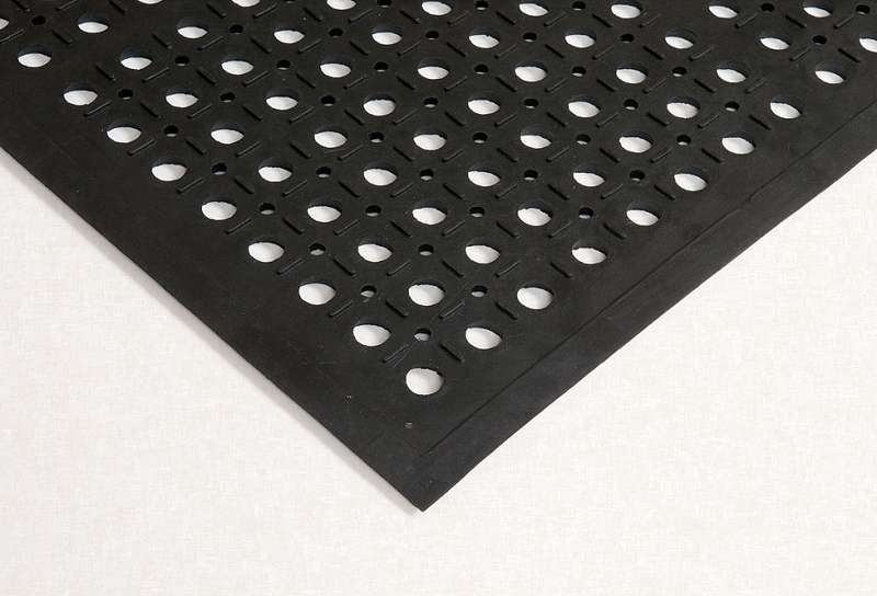 Rohože do olejového prostredia, priemyselná protiúnavová rohož, protišmykový efekt na vrchnej aj spodnej strane, vyvýšené otvory s odtokovými kanálikmi umožňujú odtok kvapalín a prepadávanie pevných častí, nábehová hrana po celom obvode, vyrobená z kaučukovej zmesi s maximálnym prídavkom Nitrilu, určená do priemyselných zariadení, odolná voči extrémne silným olejom, kyselinám a alkaloidom.