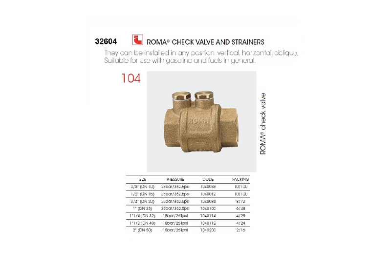 Použitie produktu: Spätná klapka pre benzíny a oleje pre horizontálne a vertikálne polohy