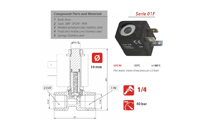 Vlastnosti: Vnútorný priemer 1 mm zodpovedá protikusu solenoidu 01F. Krytie podľa noriem.