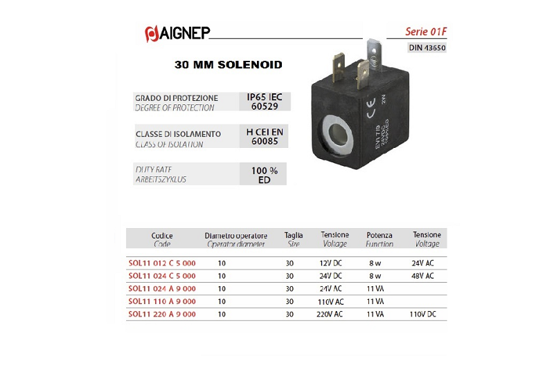 | 0052301151 | SOL11024A9000 | 24V DC | 01F/X1F " | *D10 mm | 11 VA | 30 mm | 0.112 kg | |