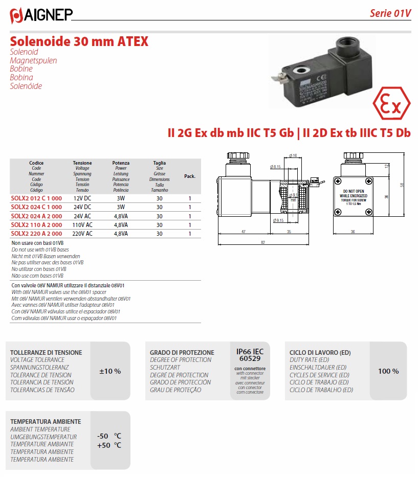 Určené na spínanie pneumatických ventilov Séria 01V (alebo iných sérií podľa čapu solenoidov 8-9 mm).