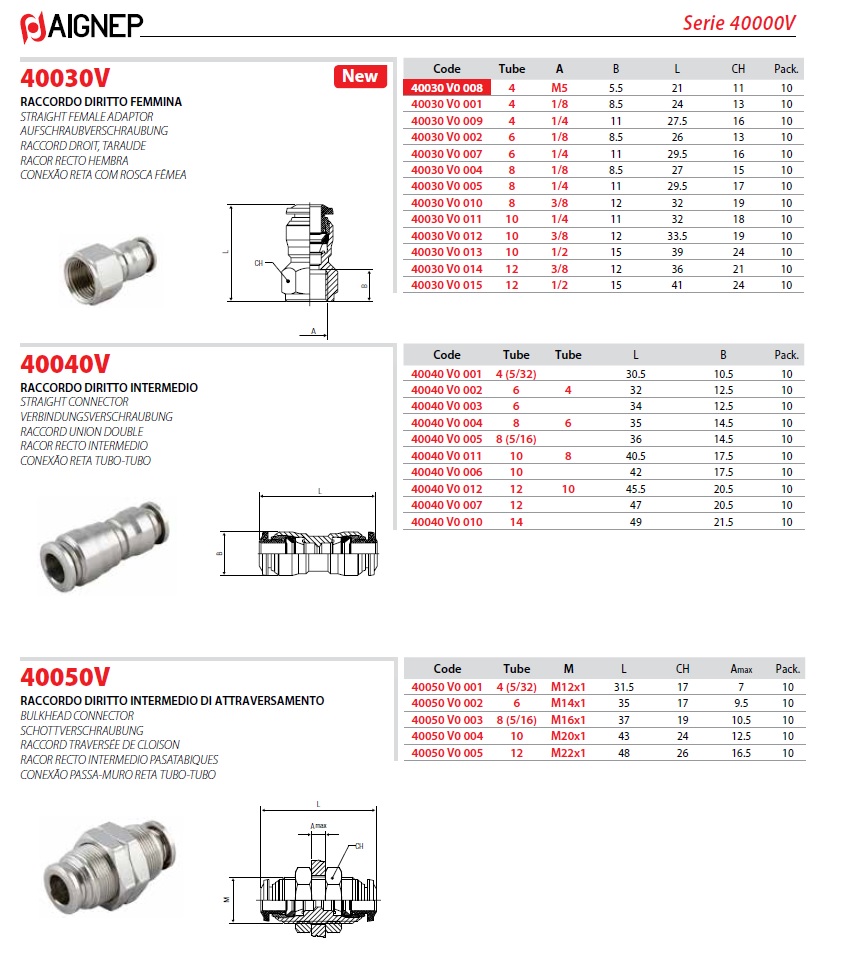 Skrátená poznámka: Séria AIGNEP 40000V, celokovové spojky z mosadze
