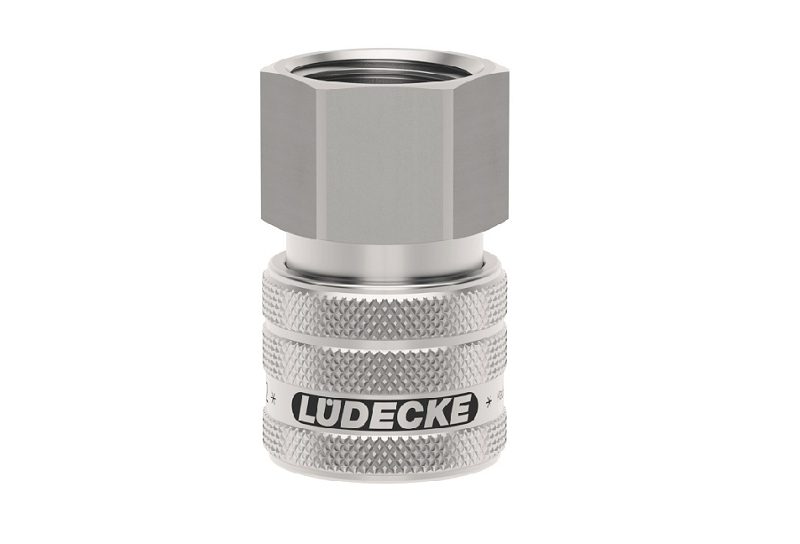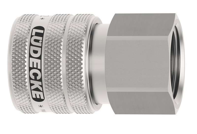 Rýchlospojka z nerezovej ocele 1.4305 s vnútorným závitom, séria Dn 7,2 jednostranne uzatvárateľná. Nerezové rýchlospojky tejto série ESE DN 7,2 majú priemer nasadzovacieho čapu 12 mm. Rýchlospojka s ergonomickou objímkou - vrúbkované majú lepší úchop a nešmýkajú sa. Na prívod stlačeného vzduchu pri zvýšenej čistote a hygienických predpisoch alebo pri doprave rôznych médií (plyny, chemikálie, laky, farmaceutiká). Niekoľko oblastí použitia vo farmácii, chemickom priemysle, lekárskej technike, potravinárskom priemysle, čistých priestoroch aj pre sofistikované pneumatické aplikácie. Rýchlospojky majú prietok 1150 l/min aj pri nízkom tlaku a majú minimálny odpor prietoku. Možnosť na objednanie aj rýchlospojky pre kvapaliny obojstranne uzatvárateľné (-AB). Materiál: Teleso, objímka, telo ventilu, ventil, kolíky, kolko: nerezová oceľ 1.4305. Pružiny, poistný krúžok: nerezová oceľ 1.4310, tesnenie FKM (Viton).