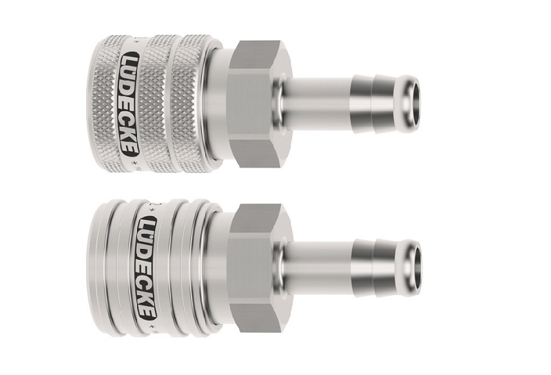 Ludecke rýchlospojka tŕň z nerezovej ocele 1.4305, séria Dn 7,2, obojstranne uzatvárateľné. Rýchlospojky majú prietok 660 l/min. aj pri nízkom tlaku a majú minimálny odpor prietoku. Nerezové rýchlospojky tejto série ESE DN 7,2 majú priemer nasadzovacieho čapu 12 mm. Niekoľko oblastí použitia, najmä pre kvapalné médiá v stavbe zariadenia, meracie a regulačné technológie, farmácie, lekárske technológie, chemický priemysel, potravinársky priemysel a tiež na zvýšenie čistoty a hygienických predpisov. Dvojité vypnutie, aby pri odpájaní nedošlo k úniku média. Spojky je možné pripojiť pomocou priamych zástrčiek DN 7,2. Dvojité uzatváracie zátky však nemôžu byť spojené so štandardnými spojkami DN 7,2. Materiál: Teleso, objímka, telo ventilu, ventil, kolíky, kolko: nerezová oceľ 1.4305. Pružiny, poistný krúžok: nerezová oceľ 1.4310, tesnenie FKM (Viton).