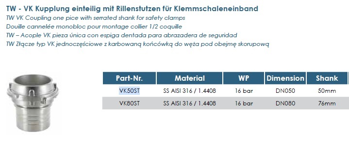 Spojky systému TANKER, MONOBLOK - zárezný tŕň so systémom zápichu na utiahnutie spony (DIN 2817). Vlastnosti: Pretože je spojka z jedného kusu, nemusí sa riešiť únik média cez závity. Túlec odporúčame s hadicou upínať sponami typu FLEXOLINE. Pre tieto koncovky je najviac odporúčaná hadica PETROTEC 16/SPL EN 12115 s možnosťou riešenia antistatiky.