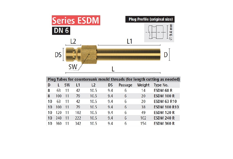 | 0053136080 | ESDM100R | 15 bar | 11 | 100 mm | 6 mm | ø8, L1=79 mm | 0.019 kg | 10 ks | |