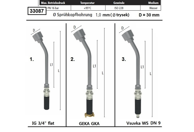 | 0033087110 | GG90301034I | 16 bar | G 3/4" | 900 mm | tryska 1 mm | D=30 | 900 mm | 2.1 kg | 1 ks | |