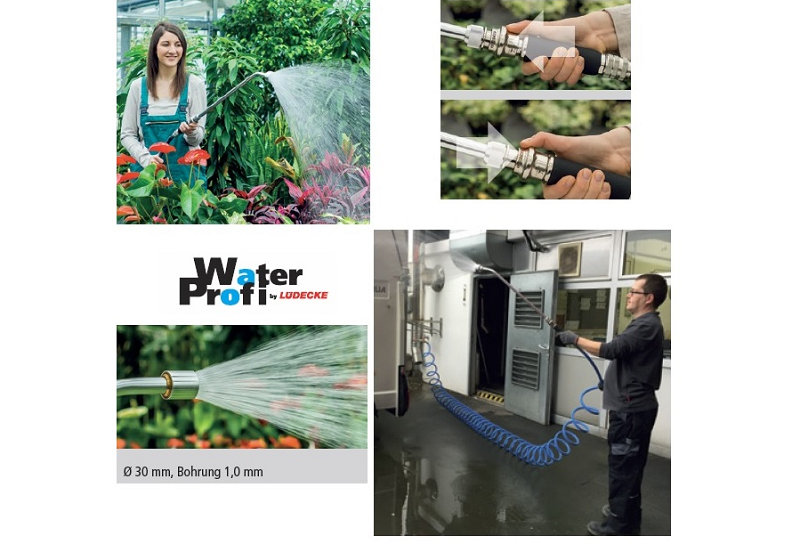 Výrobky Water Profi DN 9 sú patentom výrobcu Lüdecke, sú určené predovšetkým na priemyselné použitie. Všetky tri verzie (tohto materiálu) majú pripojenie vrchného konca "D" s priemerom 30 mm, trysky s priemerom 1 mm. Možnosti spodného hadicového pripojenia uvádza tabuľka v stĺpci "Pripojovací závit". a) variant s vnútorným závitom IG 3/4" (flat). b) variant, kde mieste závitu je naskrutkovaná GEKA typ GKA. c) rýchlospojková vsuvka DN 9 s čapom s vonkajším priemerom 17 mm.