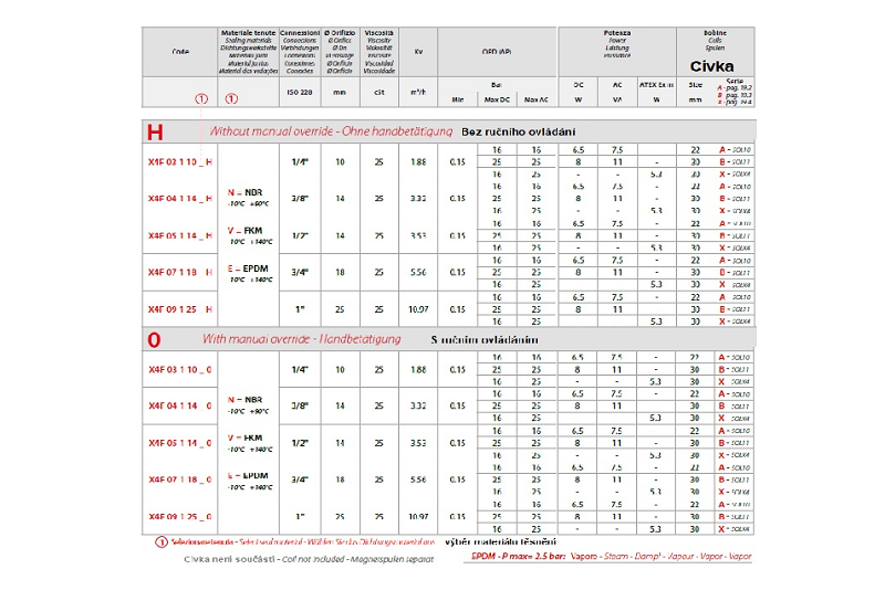 | 0082878620 | X4F09125NH | G 1" | NBR | 0.15 - 25 bar | 25 mm | 10970 L/hod. | Sol.10 (11) SOLX4 mm | H " | |